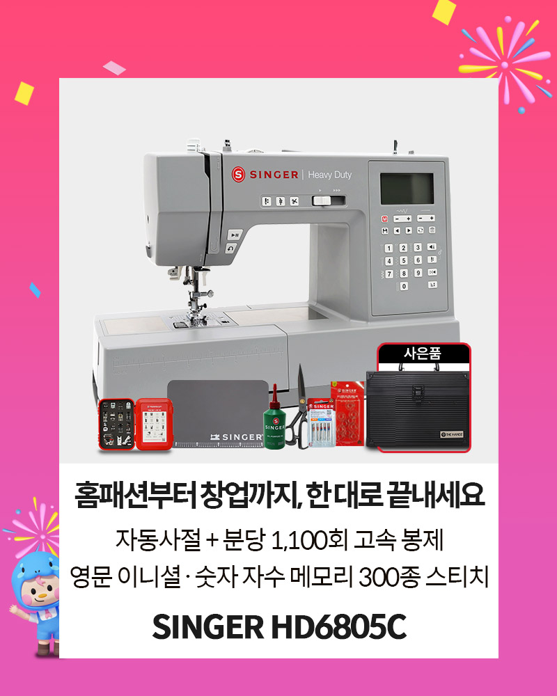 자수미싱 영문 이미셜 재봉틀 싱거 HD6805C 신제품 미싱 자동사절/올케어 필수 패키지 : 명품미싱